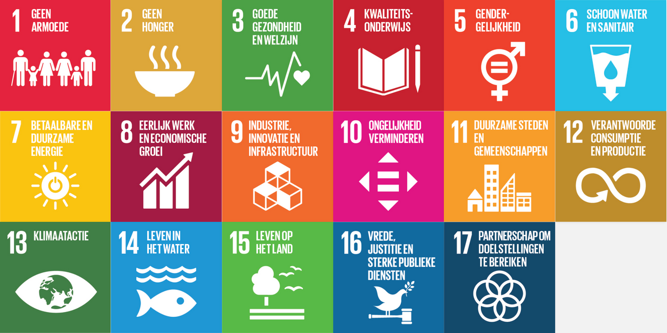 We nemen onze verantwoordelijkheid in de verduurzaming van onze bedrijfsvoering. Met ons dagelijkse werk dragen we bij aan de wereldwijde duurzame ontwikkelingsdoelen van de Verenigde Naties: de Sustainable Development Goals (SDG’s).